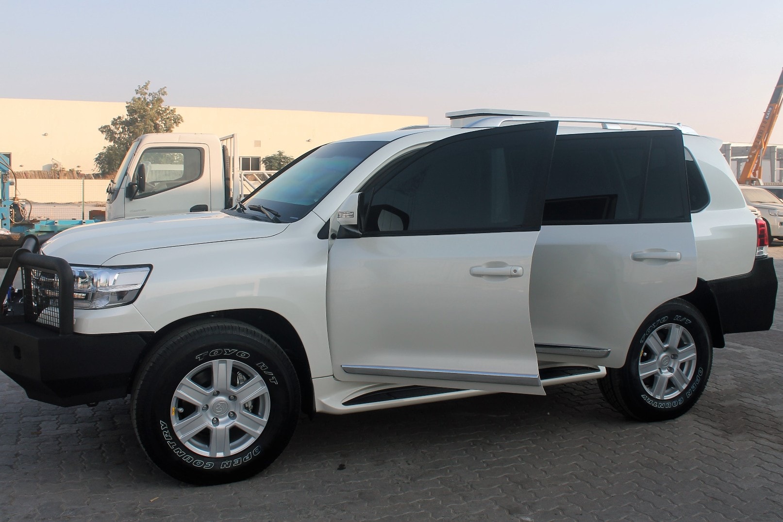 We armor Land Cruisers to Protection level B4, B4+, B6 and B7 levels. All four sides of the passenger compartment and the roof of the vehicle are protected using high-quality (certified) armour steel and glass. The armouring is integrated inside the vehicle' cab and forms a complete self-supporting structure so as to avoid excessive stress on the vehicle's original structure. Doors are upgraded with Heavy-duty hinges and with in-built door-stop. Fuel-tank is protected with steel armour-plates.
