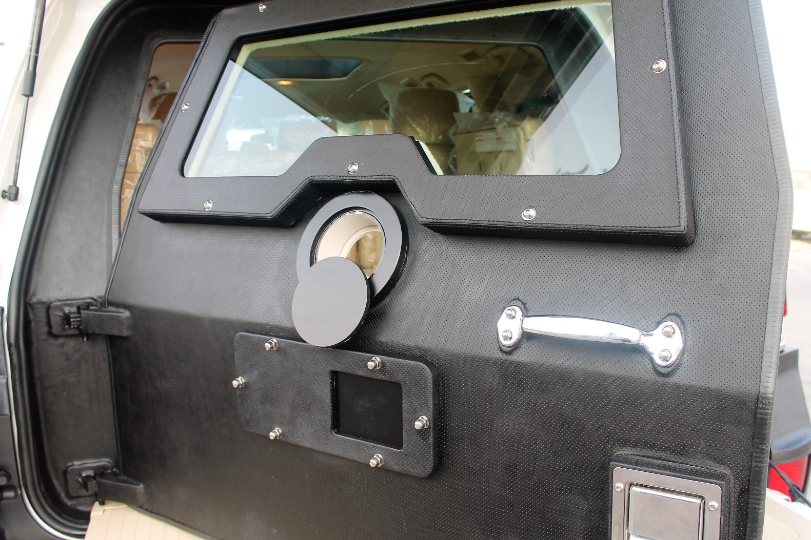 Armoured Toyota Land Cruiser With Roof Hatch & Gun Ports are equipped with additional security features to enhance its defensive capabilities. Gun ports are installed on the Bulk Head as well as the left and right sides of the vehicle to enable the gunner to suppress any pursuing attackers at different angles. Armored Roof Hatch not only provides an additional exit point for emergency situations, but it also enables a gunner to stand and return fire at the front and rear of the vehicle.